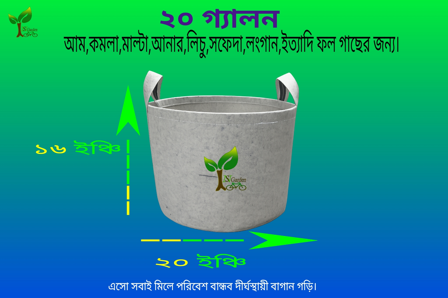 ৫ গ্যালন জিও গ্রো ব্যাগ (5 Gallon 600gsm Gray)
